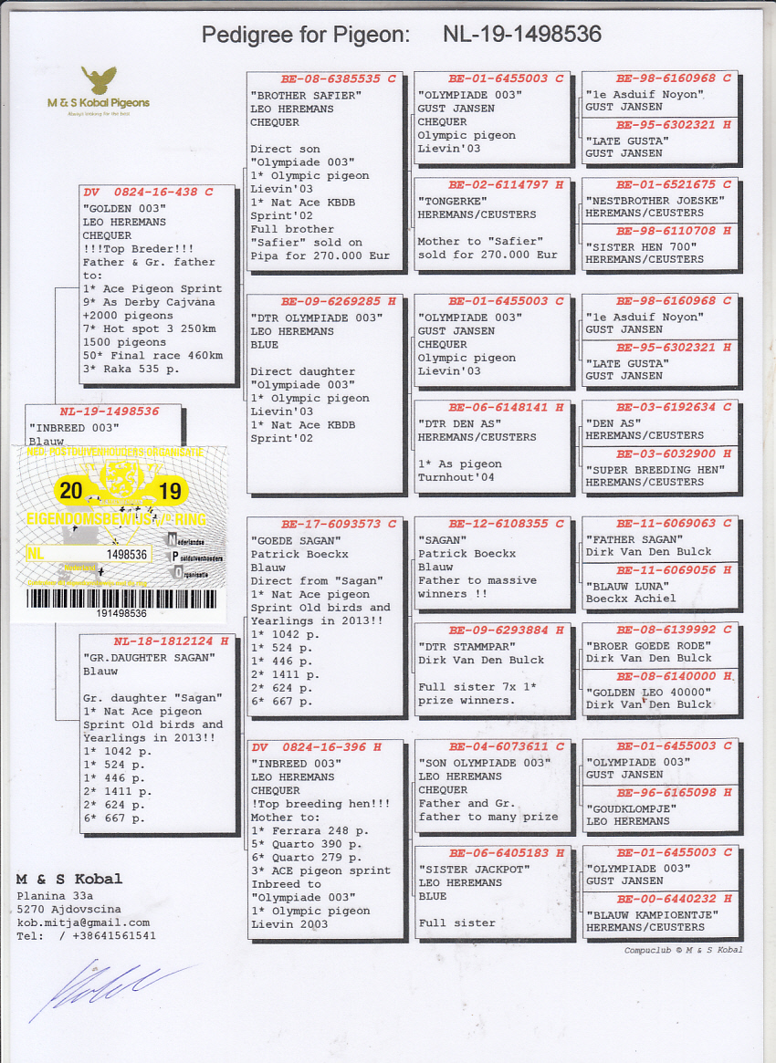Result From Golden Wing Pigeon