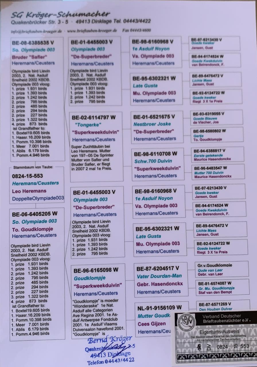 Post results from Golden Wing Pigeons